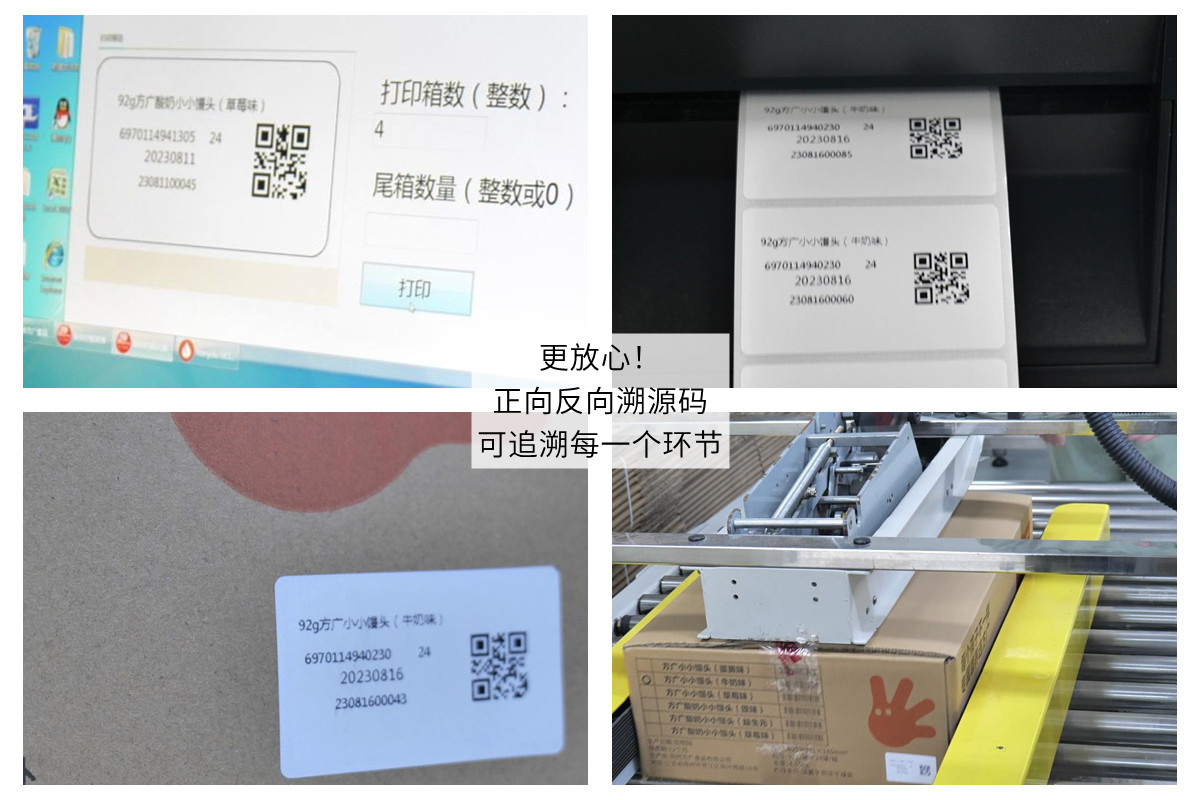 为保障食品质量,生产管理规范化、标准化,建立溯源系统,可以正向、反向追溯到每一个环节,每一种原料。每一盒产品都可以随时追溯到其生产过程的每一环节,让生产透明化,随时把控产品生产流程,同时让消费者也能监督生产安全。