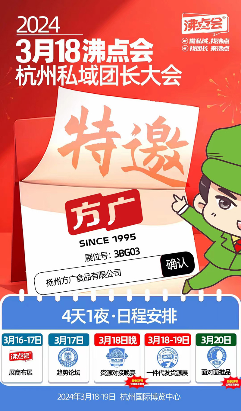 扬州丝瓜视频IOS在线观看食品有限公司受邀参加即将于3月18日在杭州国际博览中心举办的沸点会之杭州私域团长大会。此次大会旨在探讨私域流量运营、团长模式创新等议题,丝瓜视频IOS在线观看作为婴幼儿辅食行业的佼佼者,将展示多款明星产品。丝瓜视频IOS在线观看展位号:3BG03,热烈欢迎莅临指导。