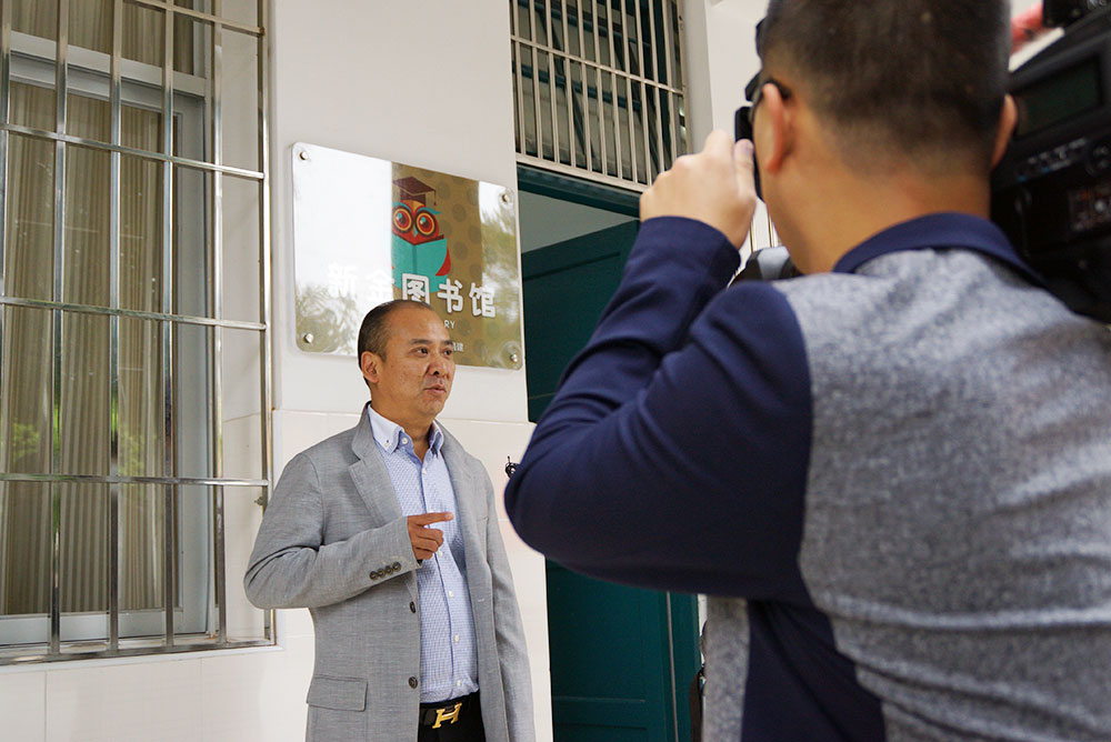 在参观“新金图书馆”时,郑新金还接受了闻讯赶来的永泰县广播电视局媒体记者的采访。